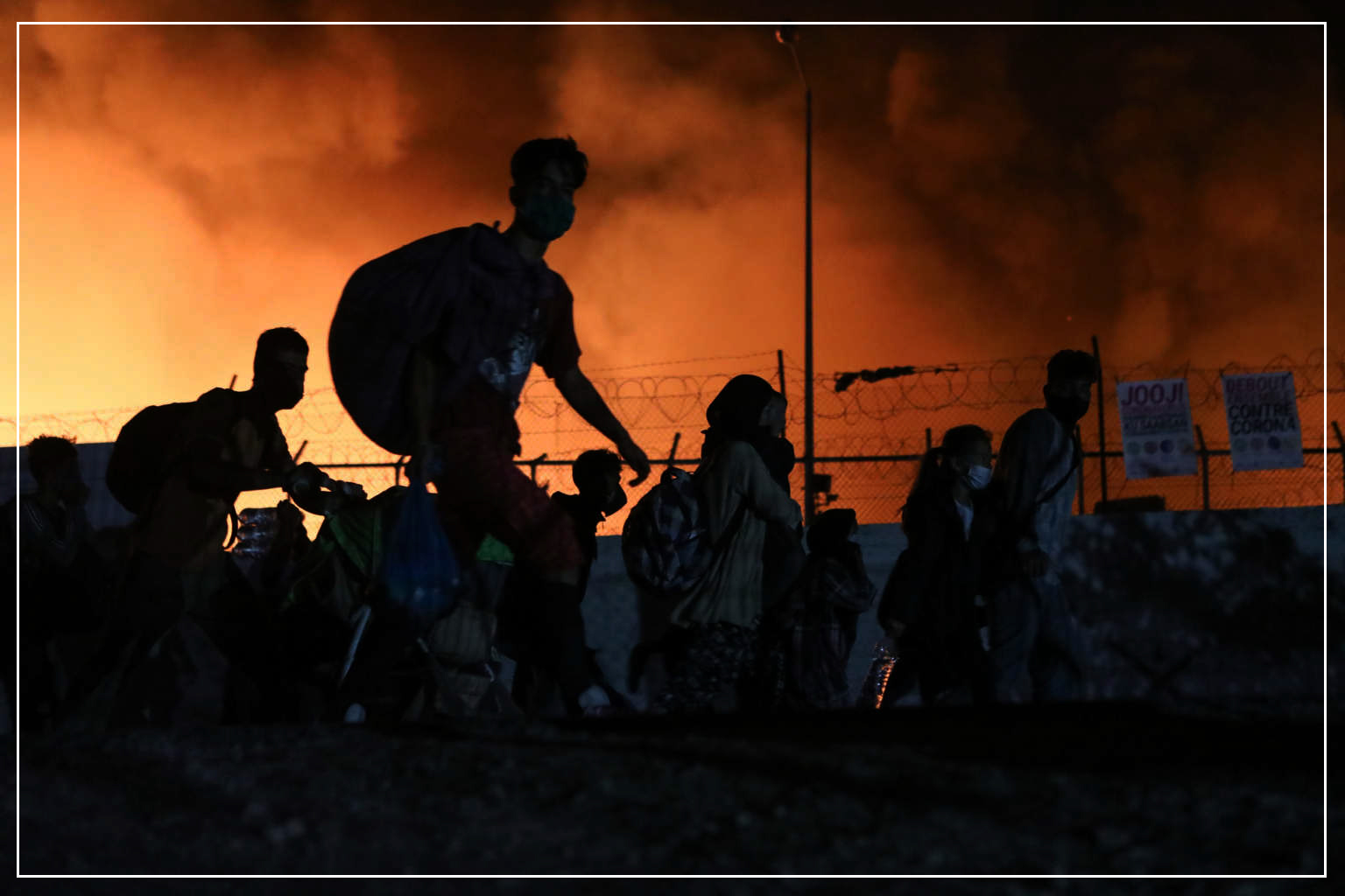 Χθες το βράδυ ήρθε και η φωτιά. Άνθρωποι τρέχανε να σωθούν. Οι εικόνες με το φλεγόμενο καμπ είναι πραγματικά τρομακτικές.