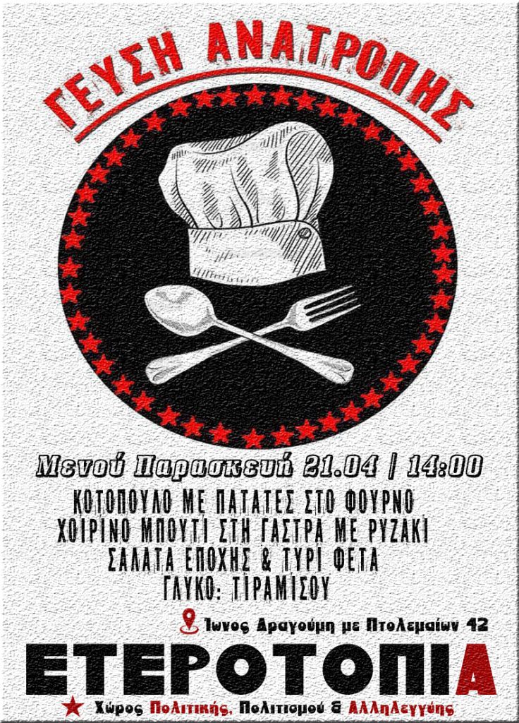 Σας περιμένουμε την Παρασκεύη, 21.04, στις 14:00 στον χώρο μας, στην Ίωνος Δραγούμη & Πτολεμαίων 42!