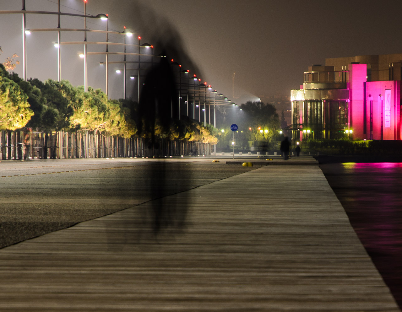 Κατακαλόκαιρο στην πόλη… Ζόρικο πράγμα! Βραδιάζει και μια αίσθηση πνιγμού σε αναγκάζει να βγεις από το σπίτι χωρίς να ξέρεις ακριβώς που θες να πας. Ασυνείδητα, σα να ξέρουν τα πόδια σου από μόνα τους που να σε πάνε, καταλήγεις στην παραλία. Νιώθεις να παίρνεις την πρώτη ανάσα, βρέθηκες στο κατάλληλο μέρος την κατάλληλη στιγμή. Ξεκινάς να περπατάς προς το Μέγαρο Μουσικής. Περπατάς και παρατηρείς. Ο κόσμος γύρω πολύς, μάλλον αισθάνθηκαν κι άλλοι τον πνιγμό που ένιωσες πριν λίγο. Περπατάς ανάμεσά του σα να γίνεσαι ένα με αυτόν, αλλά ταυτόχρονα να ξεχωρίζεις, διατηρώντας μια περίεργη ιδιωτικότητα.