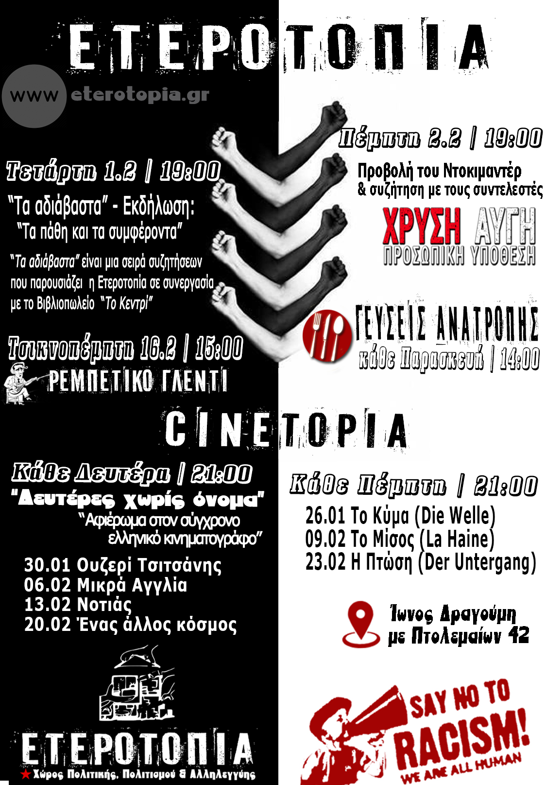 Η Ετεροτοπία επανερχεται δυναμικά τη νέα χρονιά με ένα αντιφασιστικό-αντιρατσιστι