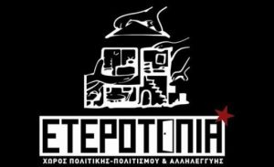 Η ανοιχτή συνέλευση της ΕΤΕΡΟΤΟΠΙΑΣ μας περιμένει για ακόμη μία φορά με νέες ιδέες Την Κυριακή 19 Φεβρουαρίου στις 17:30 θα πραγματοποιηθεί η καθιερωμένη συνέλευση στην ΕΤΕΡΟΤΟΠΙΑ για να συζητήσουμε το πρόγραμμα του μήνα, το σχεδιασμό νέων εκδηλώσεων αλλά και δράσεων αλληλεγγύης. Μαζευόμαστε λοιπόν όλοι και όλες την Κυριακή στην ΕΤΕΡΟΤΟΠΙΑ! Ελάτε και εσείς στην ανοιχτή συνέλευση μας, με ιδέες και όρεξη για δράση! Για να κάνουμε την «Ετεροτοπία» να χωρά πολλές φωνές!